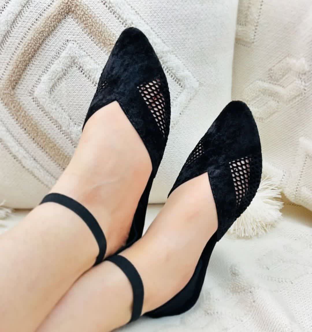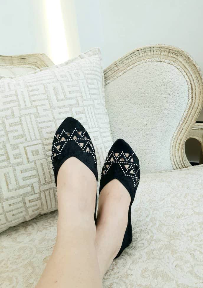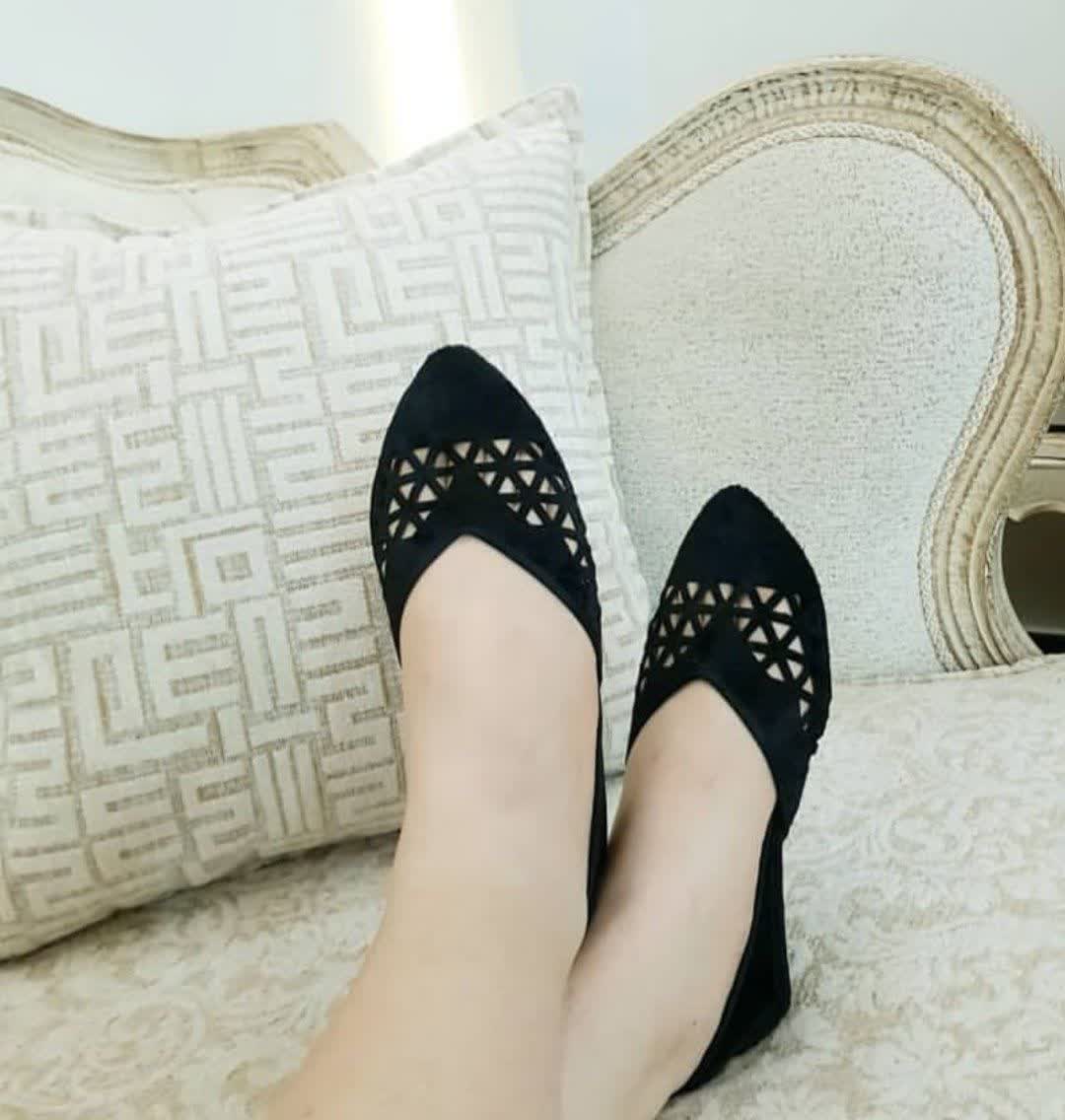 پاپوش کف چرم نوک تیز مخمل حکاکی کد ۳۵۸ ( ۱۲ جفتی )