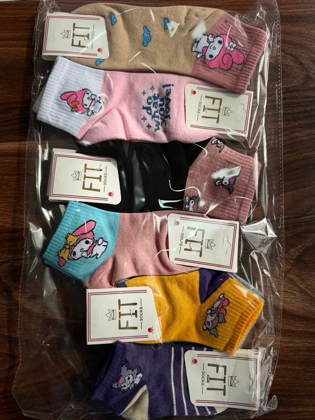 جوراب نیم ساق بچه گانه نخی اعلا فانتزی کد ۱۵۳ ( ۱۲ جفتی )